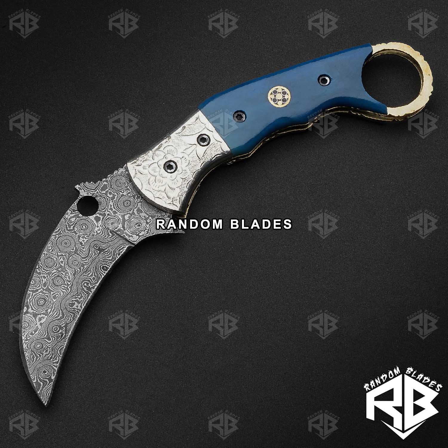 This awesome handmade damascus steel best pocket karambit knife designed and custom made by unique pocket knife maker. This damascus pocket knife would look most impressive in any folding pocket knife collection. The blade of this best pocket knife with clip is very sharp and passing through well heat treated temper and hammering process so the blade of this tactical pocket karambit knife is hard enough for use with 58-60 HRC. Gorgeous handle of this pocket folding knife is made of bone. Our all product are handmade, forged and durable. This best tactical knife is a handmade folding knife and called top pocket karambit knife. This pocket knife for sale. You can buy this best folding tactical knife for yourself or for your loved once as their birthday gift, fathers day gift, mothers day gift or wedding gift.